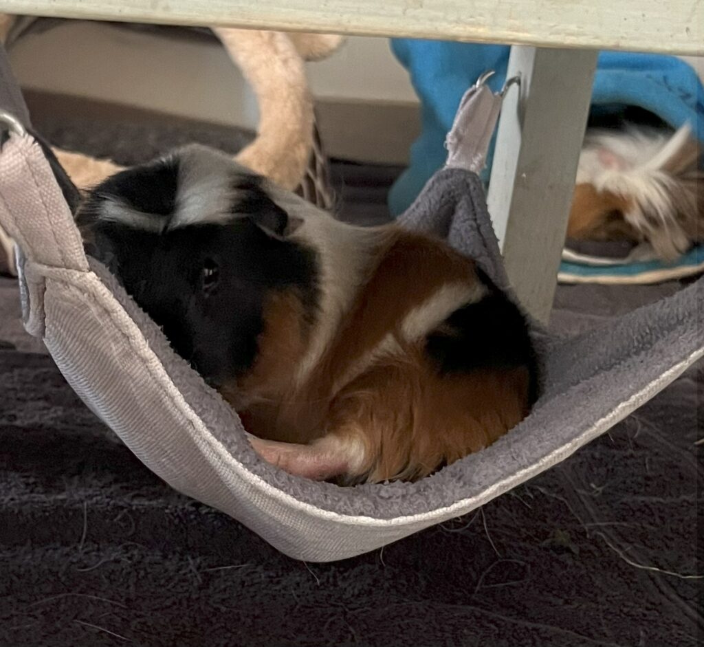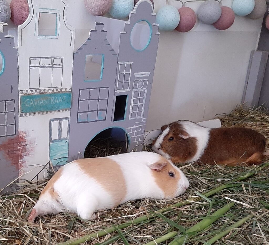 - Enges Aneinanderkuscheln bei Erwachsenen? Oft kalt/stressig → mehr Wärme (Heu, Häuschen) und Ruhezonen schaffen. Schweinchen liegen gerne beieinander, aber immer mit einem kleinen Abstand dazwischen. Rechts unten in der Chill Galerie siehst du Noor und Amelie ganz gechillt nebeneinander liegen.