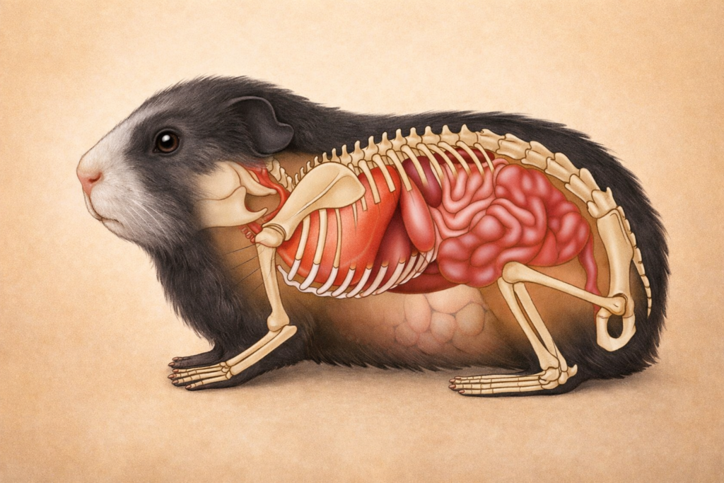 Hallo du! Ich bin Pippa, deine Meerli-Lehrmeisterin mit Herz und Brille. Heute schauen wir – ganz behutsam – in uns hinein: Wie funktioniert ein Meerschweinchen-Körper? (Keine Sorge: nur als Erklärung, nicht echt! 😉)