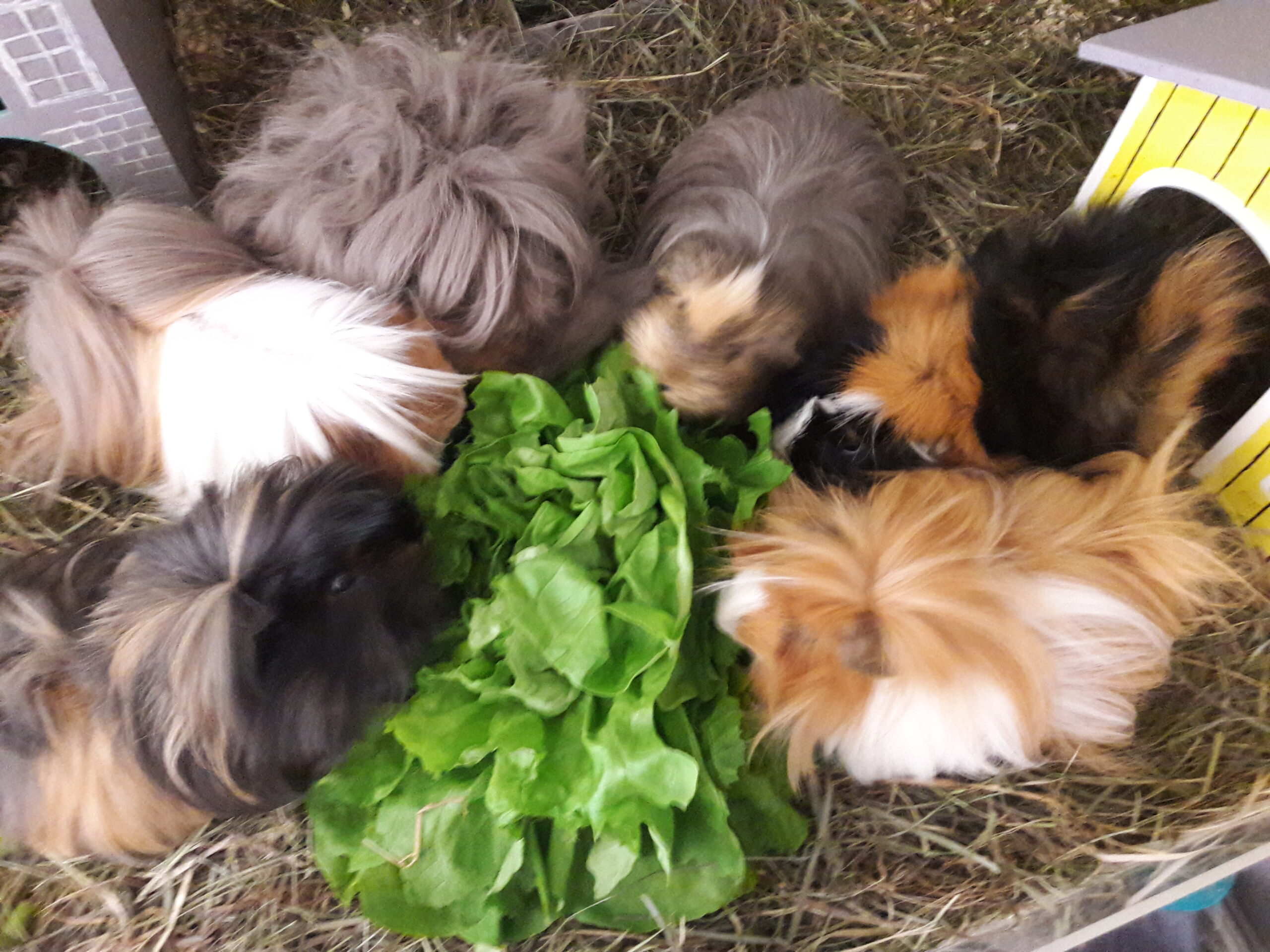• Die Gruppe “unterhält” sich immer wieder angeregt miteinander. Du wirst feststellen, dass die Schweinchen sehr viele verschiedene Geräusche von sich geben können. Alle bedeuten etwas anderes. Wenn du dir die Zeit nimmst, sie gut zu beobachten, wirst du schon bald “übersetzen” können, worum es bei der Unterhaltung zwischen Schweinchen geht. *ggg*
