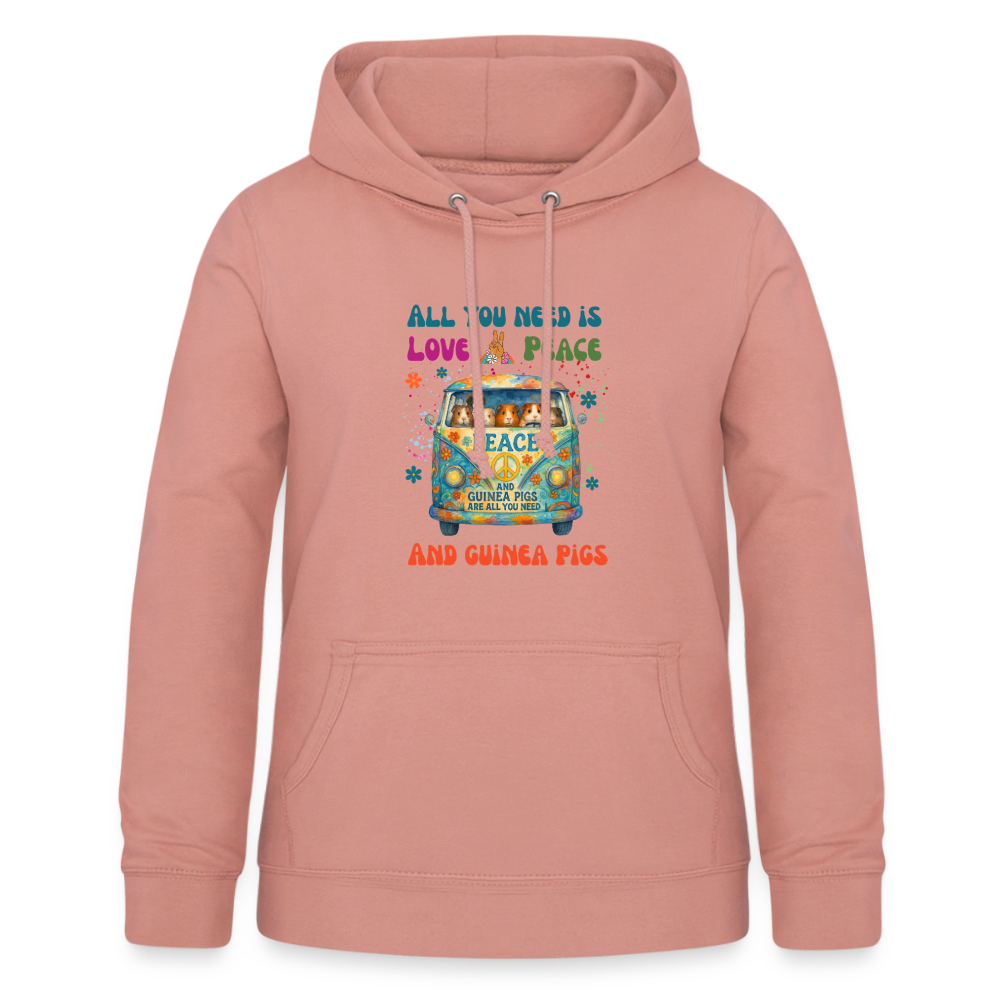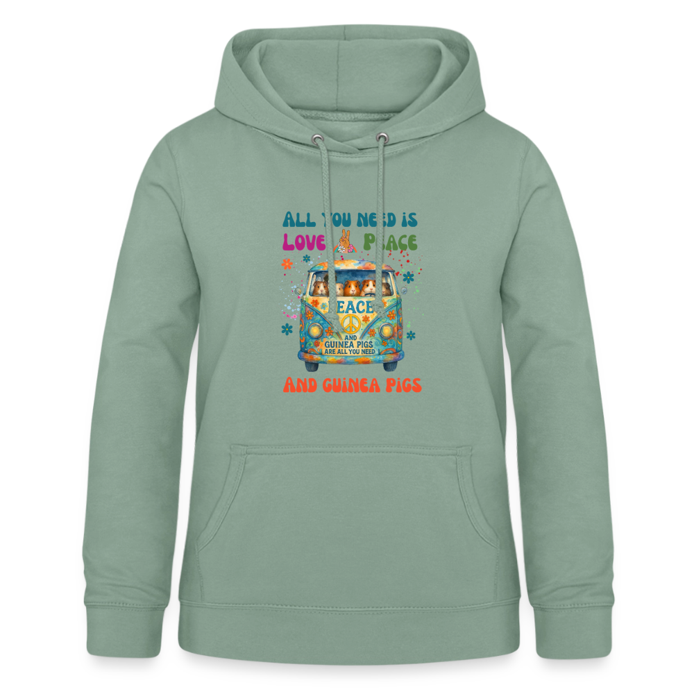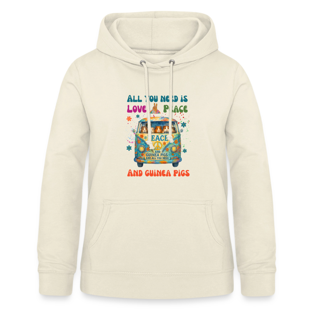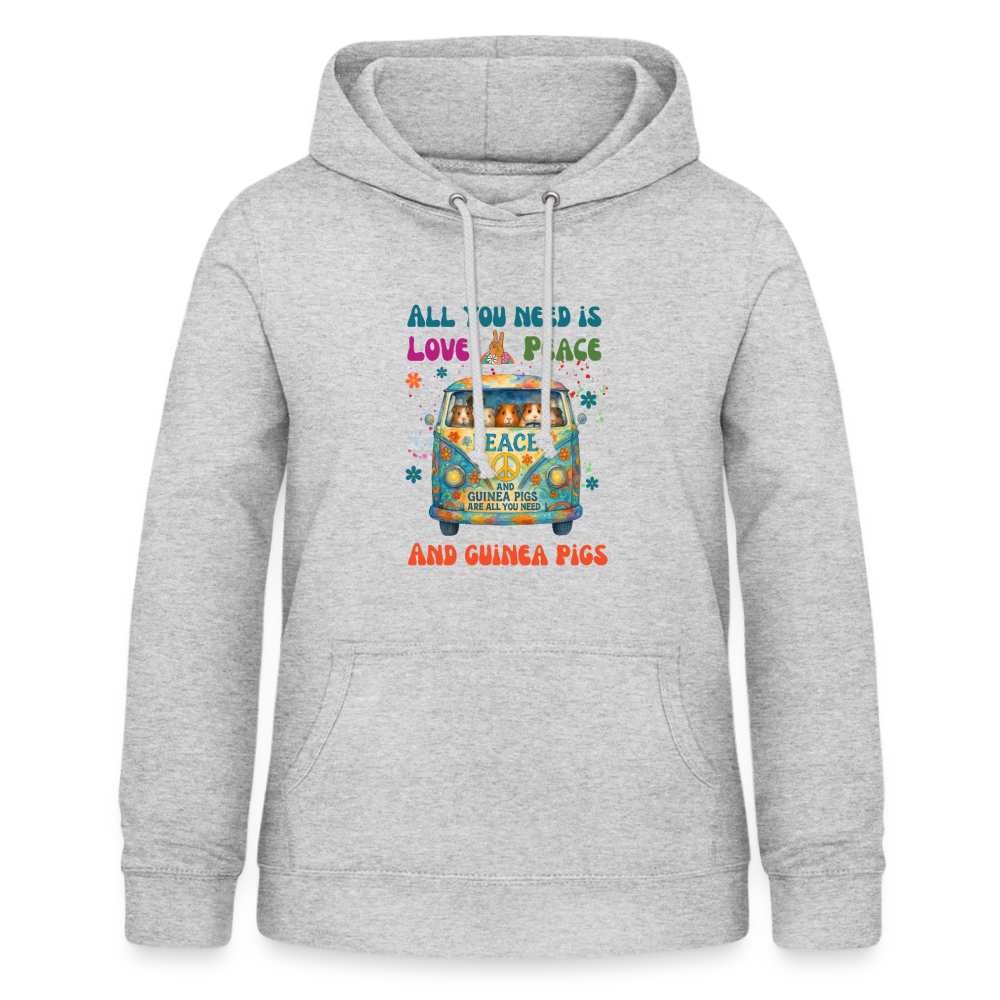 Damen Hoodie mit Meerschweinchen Motiv – All You Need Is Love, Peace and Guinea Pigs