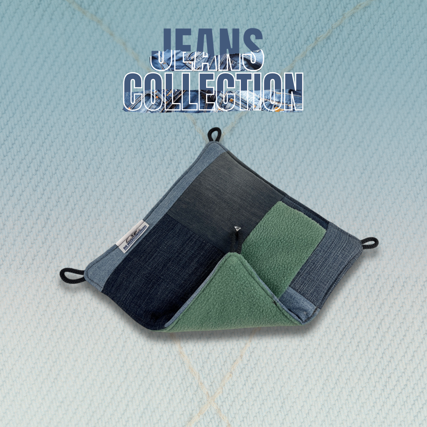 Für jedes einzelne Produkt wird der geeignete Jeansstoffteil sorgfältig ausgewählt. Unterschiedliche Waschungen, Farbnuancen, Nähte, Taschenelemente oder Strukturverläufe werden bewusst eingesetzt, damit das Design optimal zur Geltung kommt.