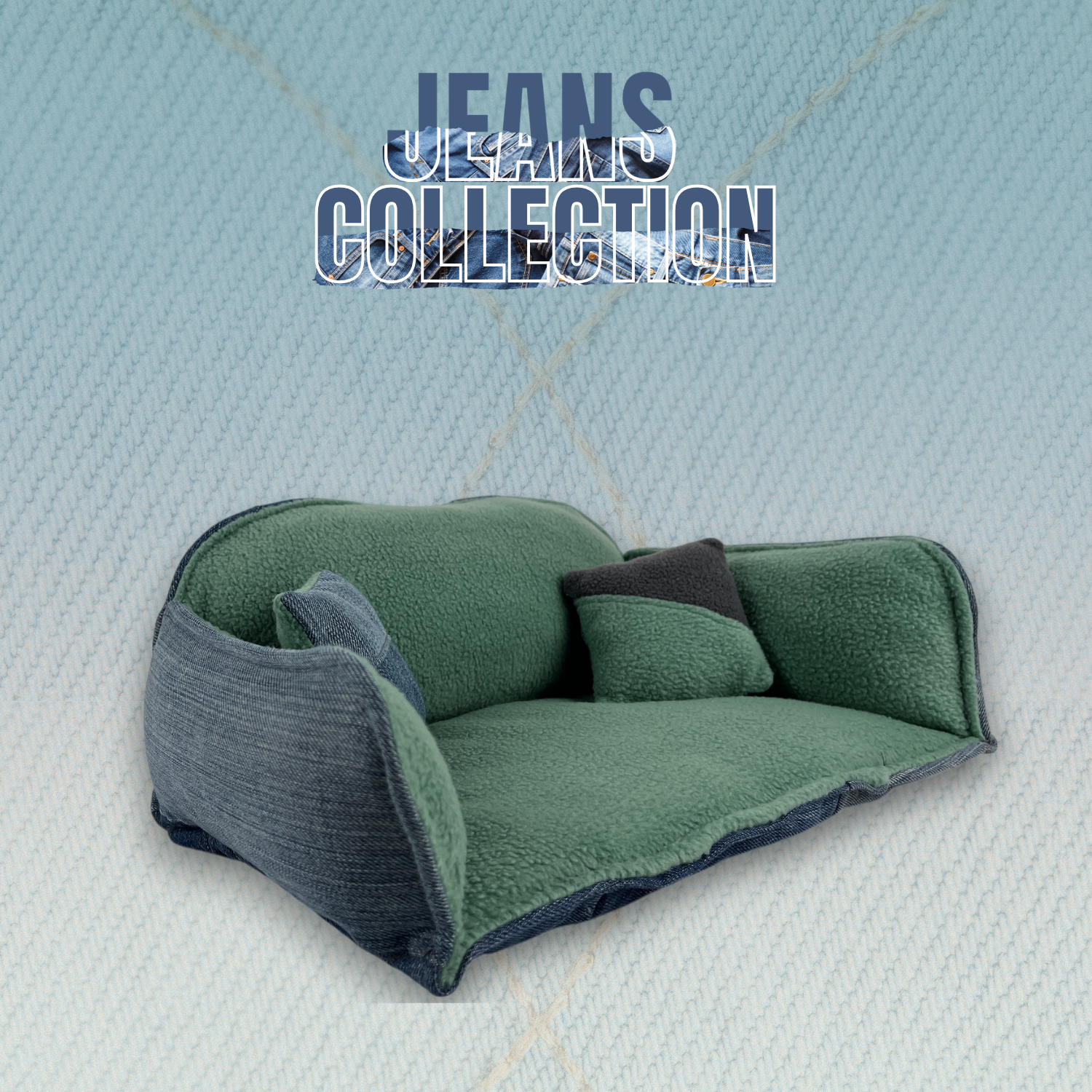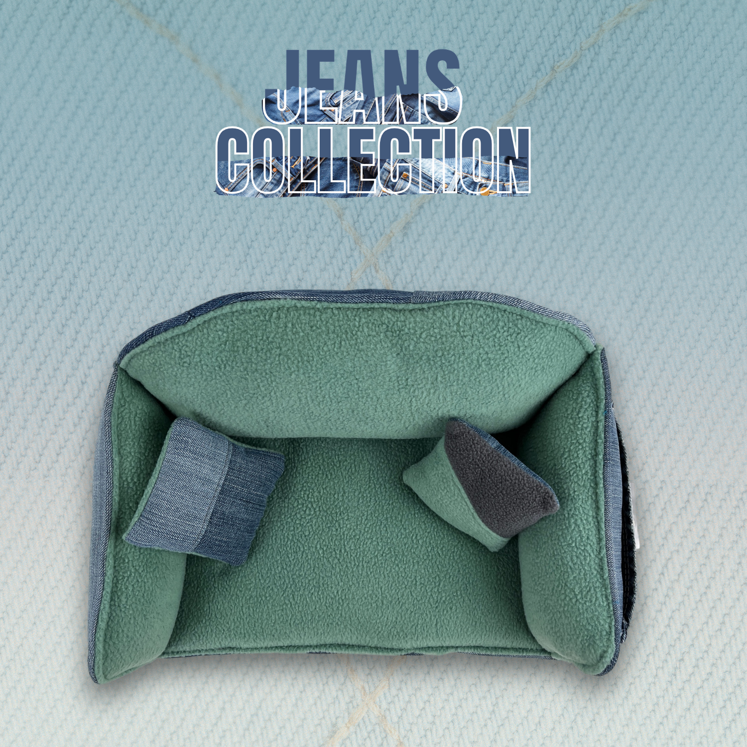 Die Jeans Collection verbindet nachhaltiges Design mit funktionaler Langlebigkeit und moderner Optik. Verarbeitet werden sowohl neue hochwertige Denimstoffe als auch ausgewählte Upcycling-Jeans, deren Used-Look sich perfekt für diese besondere Kollektion eignet. Dadurch ist jedes einzelne Stück ein echtes Unikat. Kein Sofa, kein Tunnel, kein Hausschuh gleicht exakt dem anderen. Unterschiedliche Waschungen, Nähte, Taschen oder leichte Farbnuancen machen jedes Produkt einzigartig.