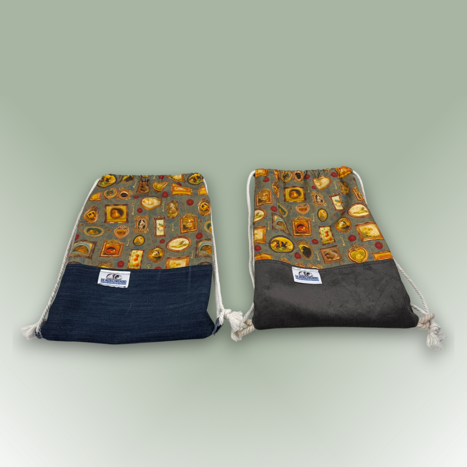 Geschlossen wird der Rucksack mit weichen Baumwollkordeln, die gleichzeitig als Schulterträger dienen. Sie lassen sich bequem tragen und ermöglichen ein einfaches Öffnen und Schließen.