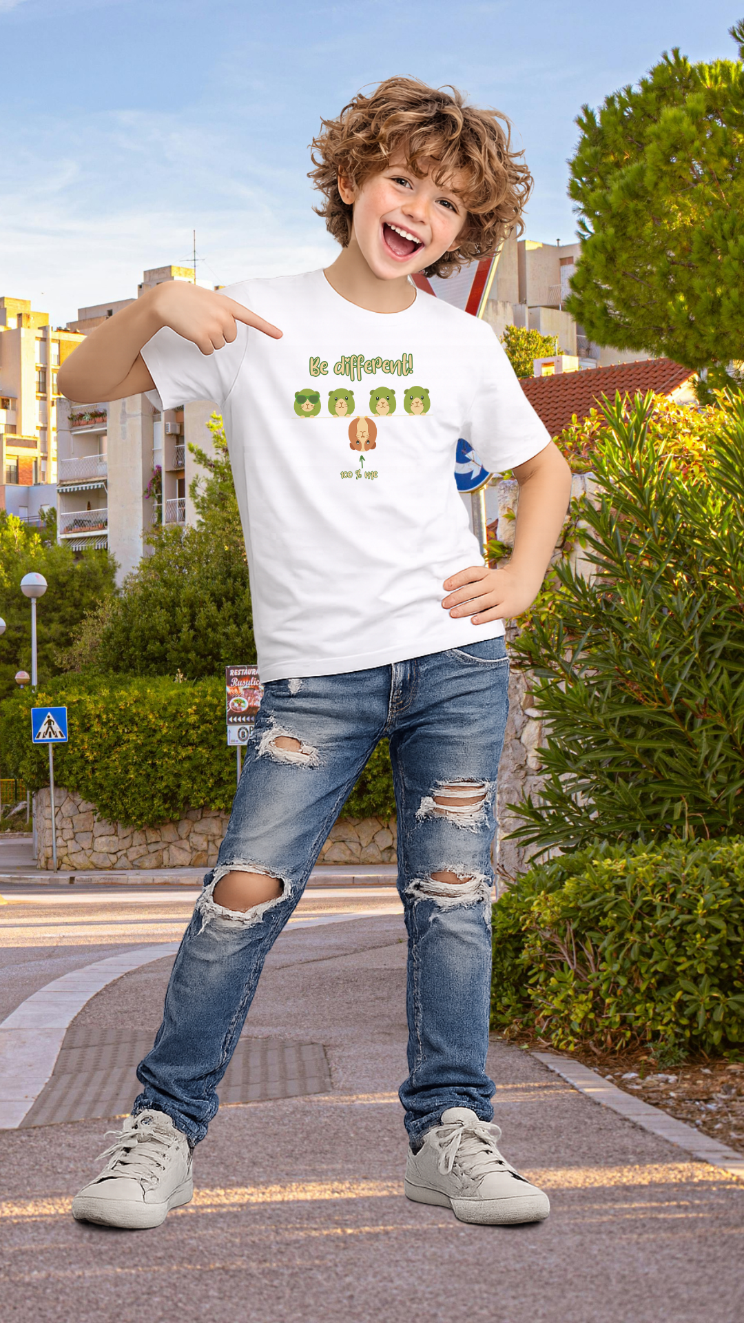 Kinder T-Shirt mit dem lustig-ironischen Meerschweinchen Motiv „Be Different!“. Ein charmantes Statement für kleine Originale. Ein Statement Piece für kleine Persönlichkeiten!