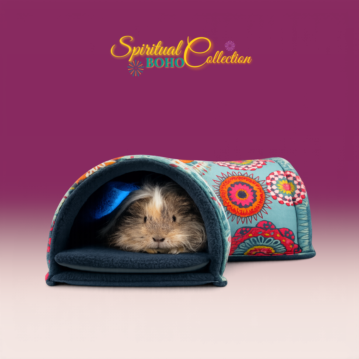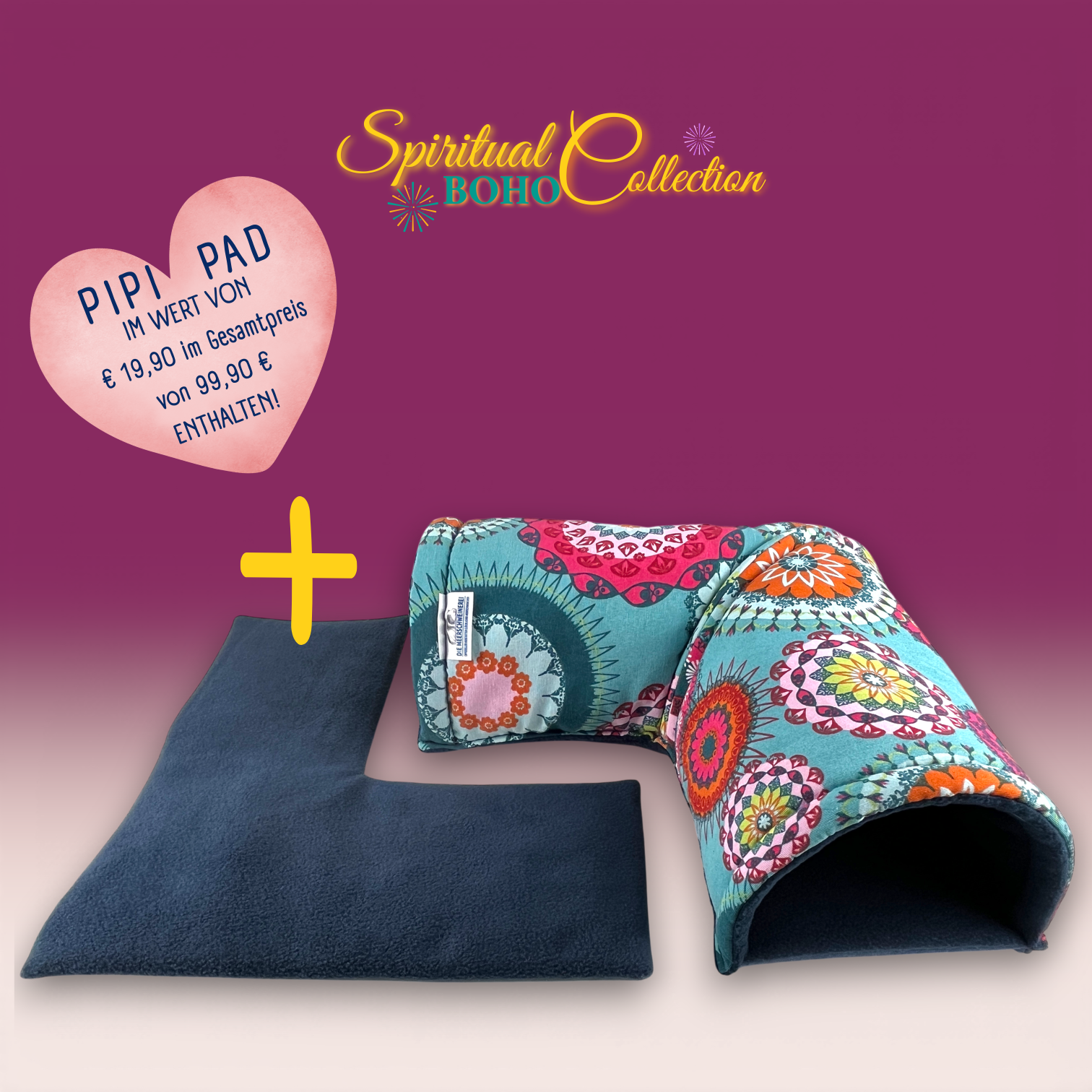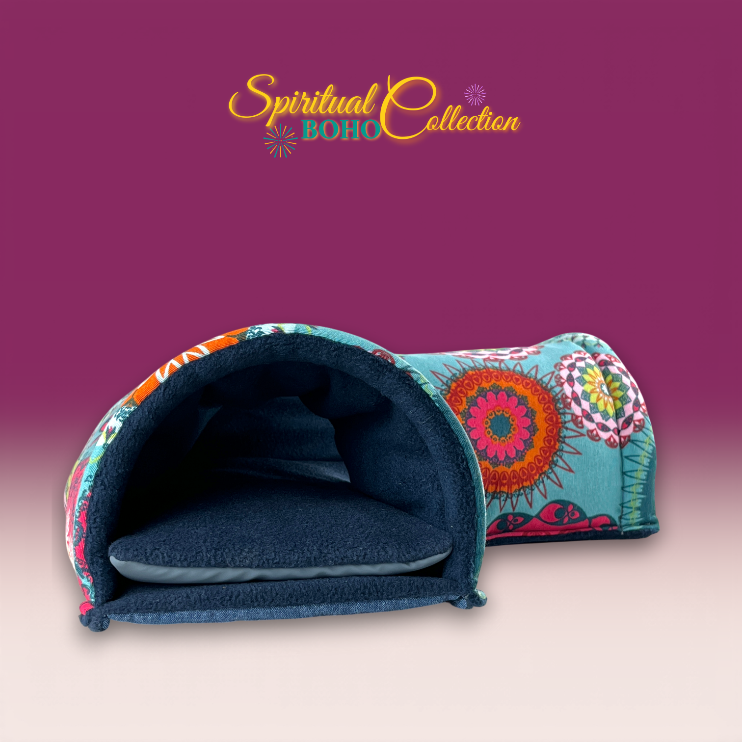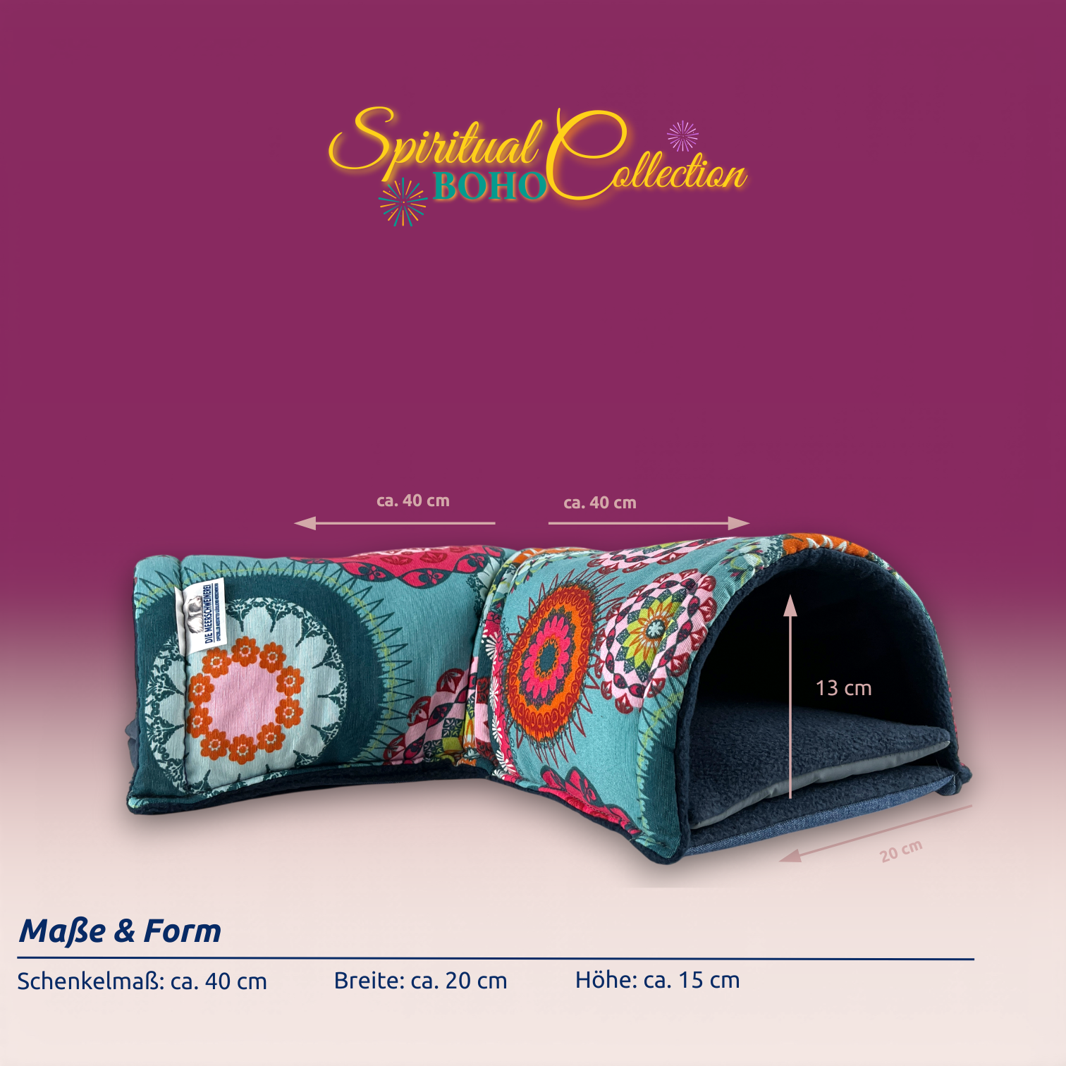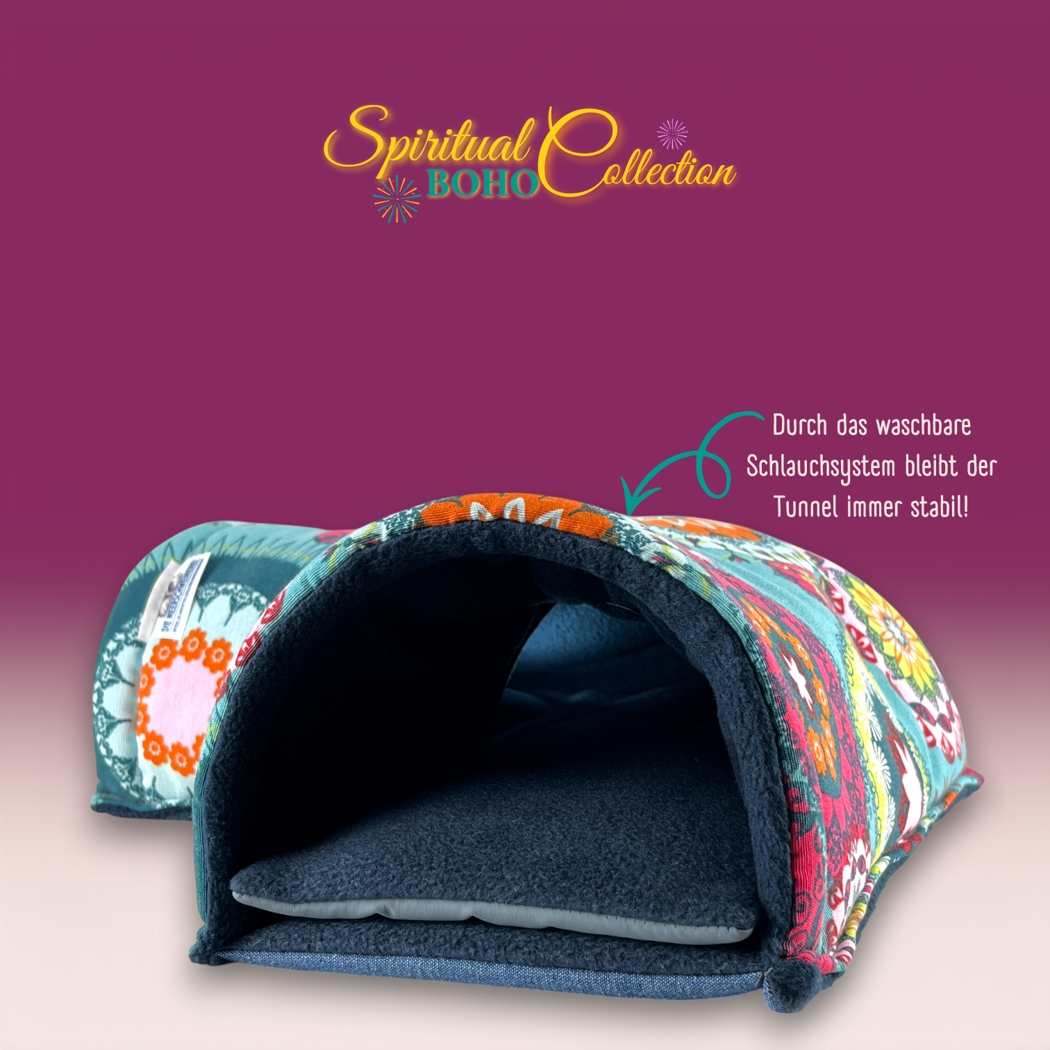 Dieser Kuschel Ecktunnel stammt aus der Spiritual Boho Collection. Eine Kollektion wie ein Sommerabend voller Farben, Muster und Magie. Ausdrucksstark. Warm. Frei. Leuchtende Mandalas, florale Ornamente und detailreiche Kreisformen verschmelzen in kräftigen Türkis-, Petrol-, Pink-, Orange- und Rottönen. Die Designs wirken wie handgemalte Kunstwerke – inspiriert von Freiheit, Kreativität und Individualität.