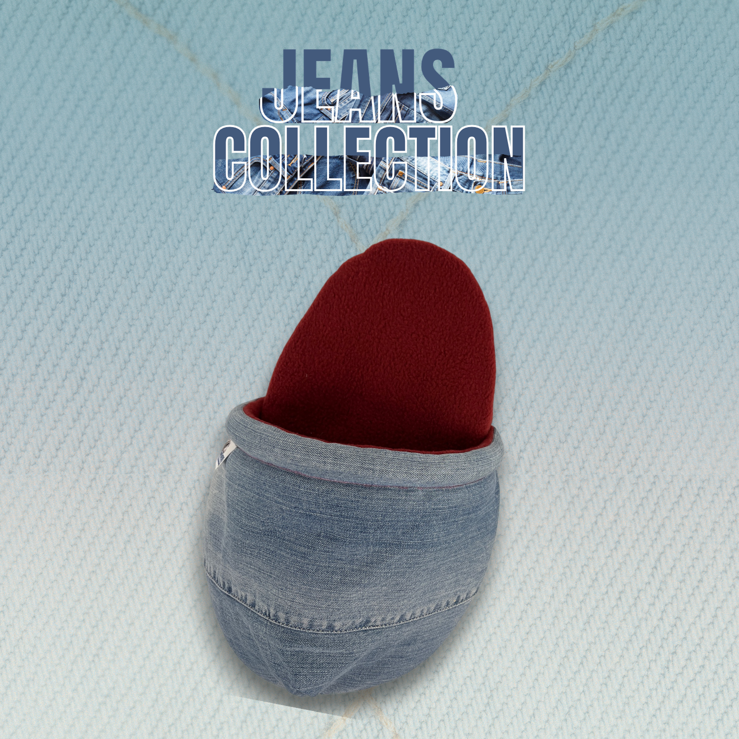 Die Jeans Collection verbindet nachhaltiges Design mit funktionaler Langlebigkeit und moderner Optik. Verarbeitet werden sowohl neue hochwertige Denimstoffe als auch ausgewählte Upcycling-Jeans, deren Used-Look sich perfekt für diese besondere Kollektion eignet. Dadurch ist jedes einzelne Stück ein echtes Unikat. Kein Sofa, kein Tunnel, kein Hausschuh gleicht exakt dem anderen. Unterschiedliche Waschungen, Nähte, Taschen oder leichte Farbnuancen machen jedes Produkt einzigartig.