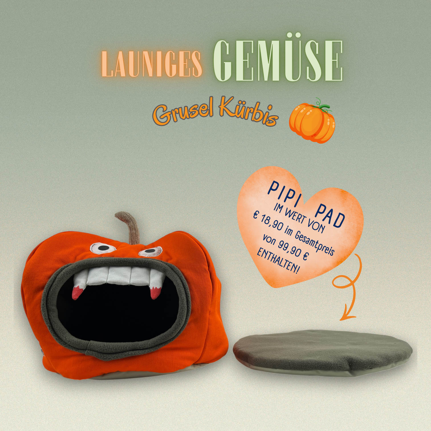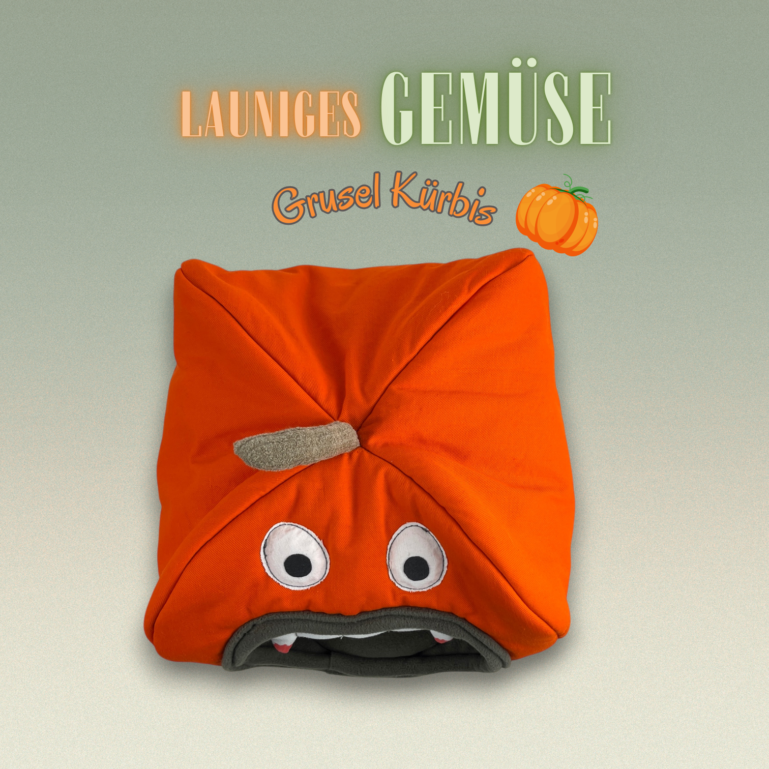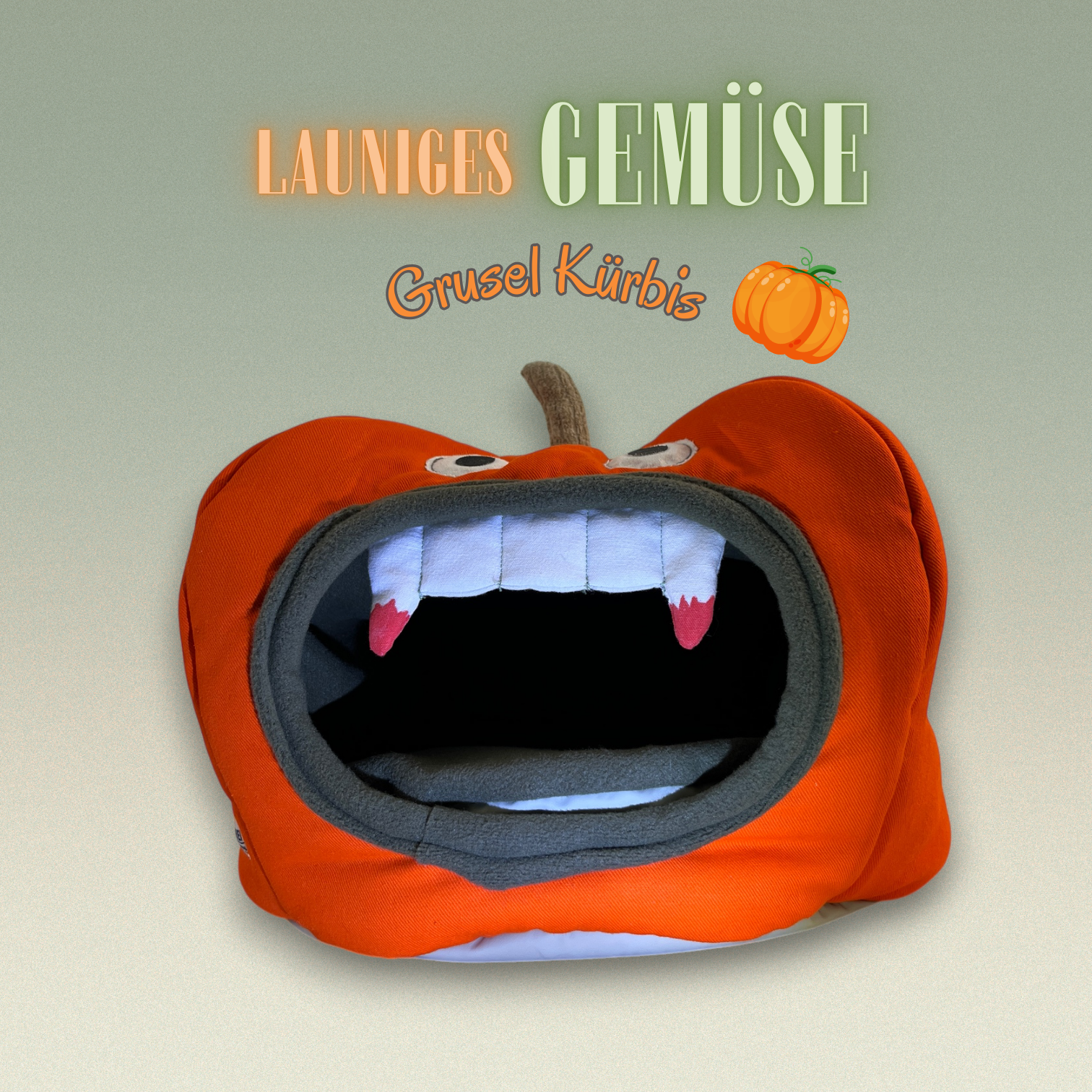 Die Meerschweinchen Kuschelhöhle Grusel Kürbis ist Teil der Kollektion „Launiges Gemüse“. Diese Kollektion verbindet charakterstarke Designs mit funktionalen Kuschelsachen für Meerschweinchen.