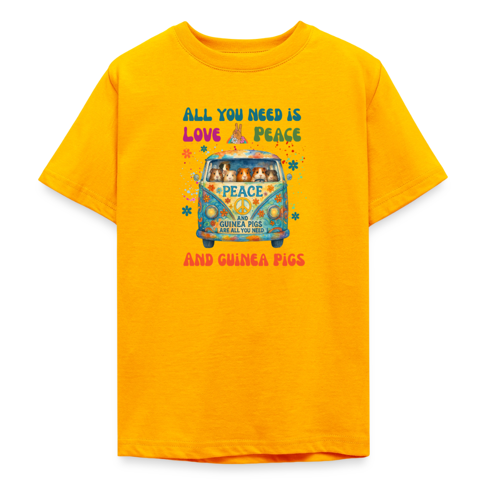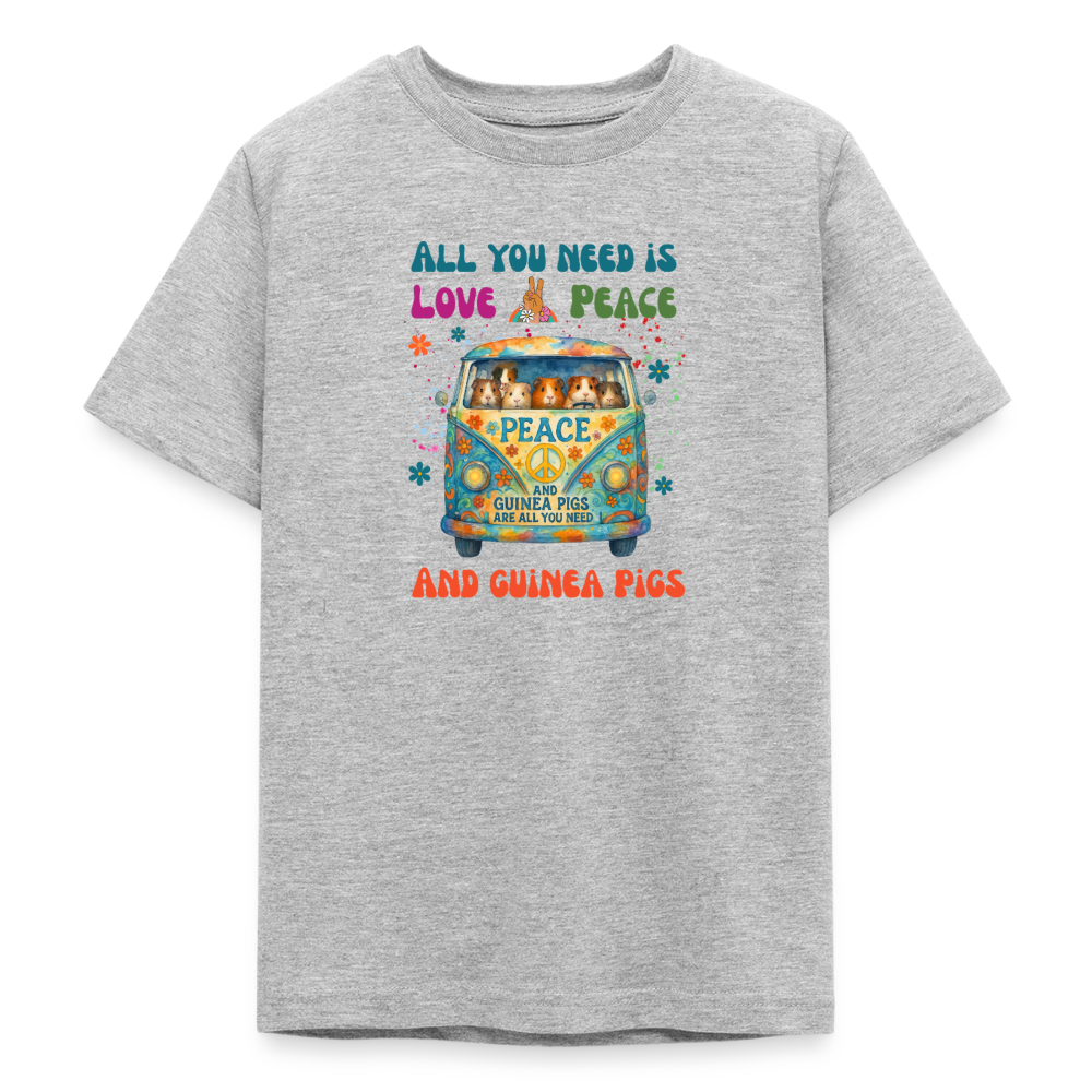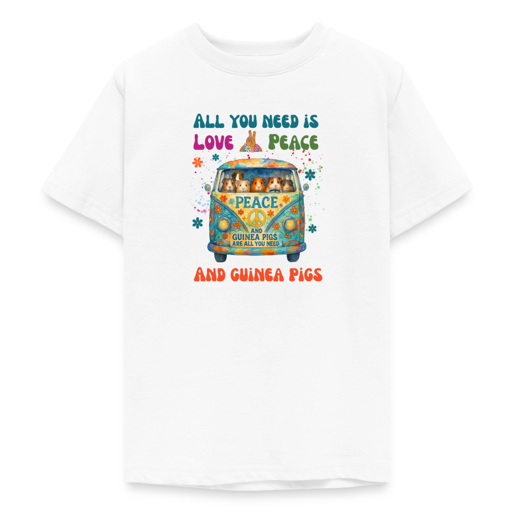 Teenager T-Shirt mit Meerschweinchen Motiv – All You Need Is Love, Peace and Guinea Pigs