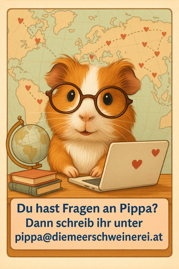 Heute ist Pippa viel beschäftigt. Sie reist durch die Welt – vorallem digital –, beantwortet Fragen von Jung und Alt, erklärt Meerli-Neulingen den Unterschied zwischen Meckern und Brommseln und entwickelt neue Ideen für ein artgerechtes, glückliches Meerschweinchen Leben.
