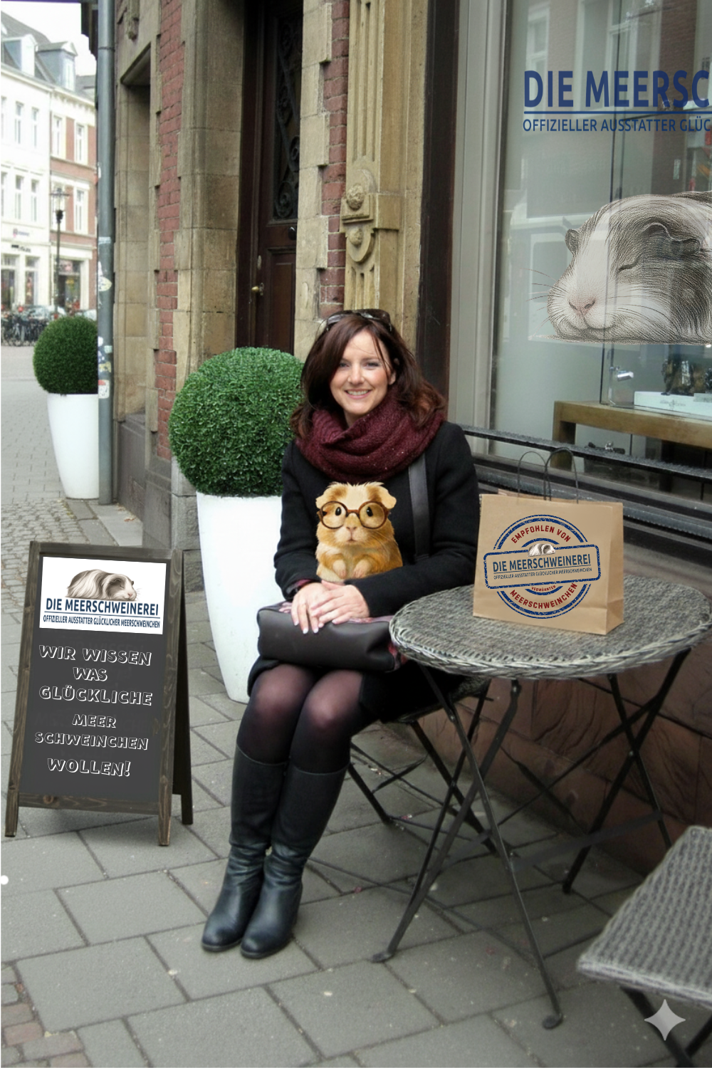 Und wenn du ganz genau hinsiehst, findest du überall auf dieser Website Spuren von ihr: viel Erstaunliches über Meerschweinchen, lustige Ideen – und jede Menge Liebe für unsere Fellfreunde.